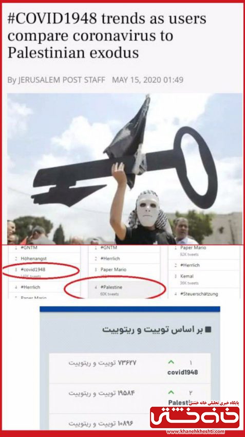 کاربران ضد صهیونیستی و طرفداران مقاومت فلسطین در سراسر دنیا در اقدامی هماهنگ کلیدواژه #covid1948 را در توئیتر سومین ترند برتر دنیا کردند.