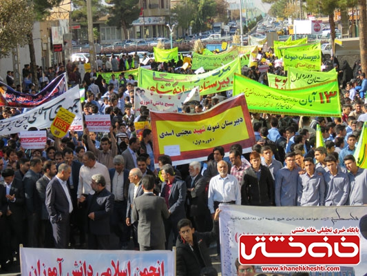 مریم احمدی ۱۴ ساله گفت: امروز برای بزرگداشت دانش اموزان خط انقلاب در سال ۵۷ در راهپیمایی حضور پیدا کردیم، ما شاهد جنایات امریکا بودیم و نمی توانیم به ان اعتماد کنیم.