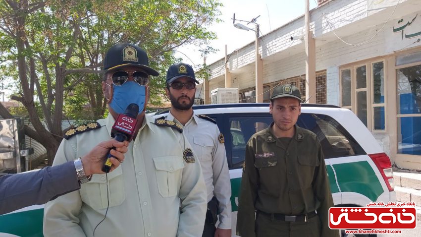 به گزارش پایگاه اطلاع رسانی خانه خشتی؛ سرهنگ کریمی فرمانده نیروی انتظامی رفسنجان امروز با اعلام این خبر در گفتگو با خبرنگار خانه خشتی اظهار داشت: با توجه به سرقت یک دستگاه خودرو پراید در ساعت ۱:۳۰ دقیقه نیمه شب ۱۶ فرودین ماه ۹۹ همکاران ما در نیروی انتظامی ضمن گشت زنی در سطح شهر خودرو مذکور را در خیابان مصطفی خمینی رویت کردند.