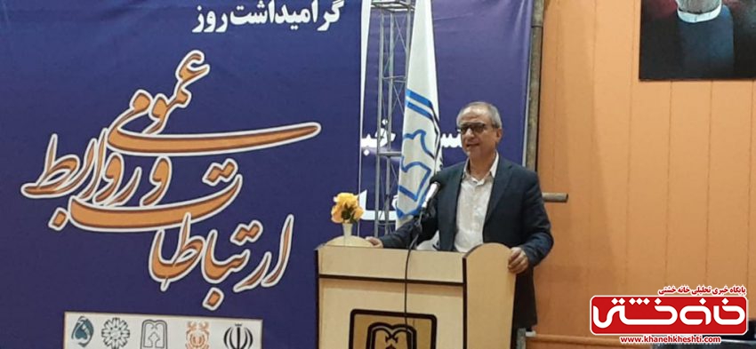 به گزارش خانه خشتی؛ علی اسماعیلی ندیمی صبح امروز در مراسم گرامیداشت روز ارتباطات و روابط عمومی در جمع مسئولین روابط عمومی رفسنجان اظهار داشت: راه توسعه مناسبات اجتماعی یک سازمان و مجموعه جزء از طریق روابط عمومی و اطلاع رسانی میسر نمی شود.