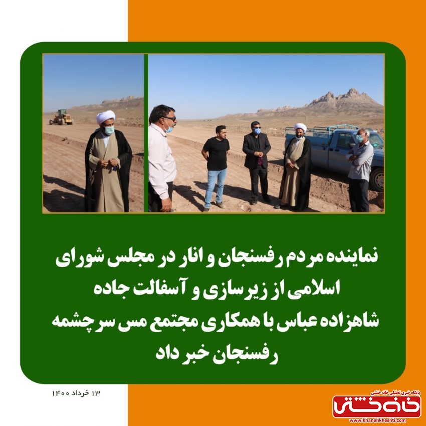 وی ادامه داد: از آنجا که روستاهای این منطقه در جوار مجتمع مس سرچشمه رفسنجان قرار گرفته اند و تعدادی از روستاها در اختیار مجتمع است، توقع اهالی منطقه از مس آسفالت این مسیر است که با توجه به درخواستی که از مجتمع مس رفسنجان انجام شد موافقت کردند و زیرسازی دو و نیم کیلومتر از جاده طی انعقاد قرارداد با پیمانکار در حال اجراست و قرار است جاده مغوئیه هم به موازات جاده شاهزاده عباس توسط مس زیرسازی و آسفالت شود.