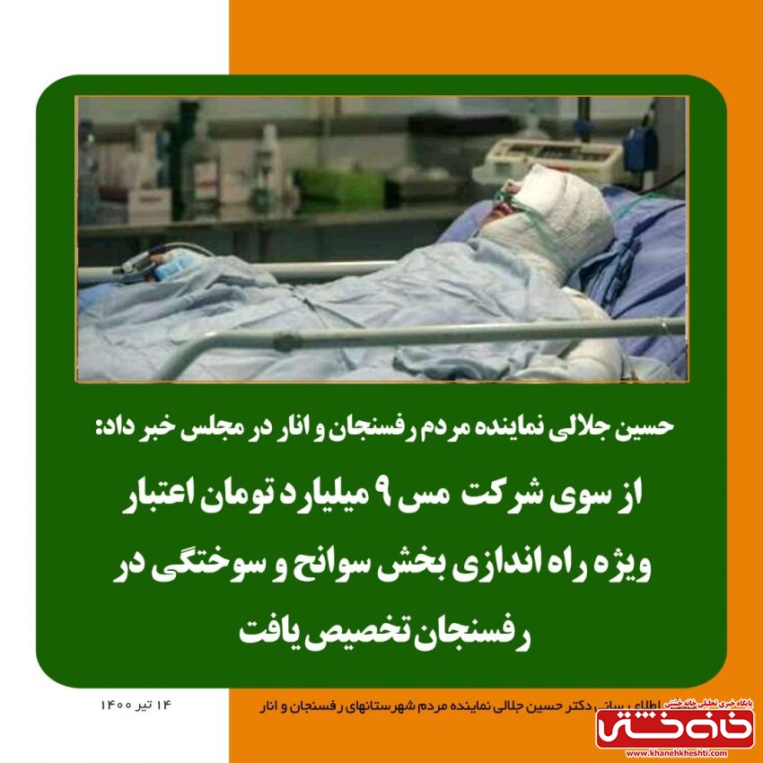 تخصیص ۹ میلیارد تومان اعتبار برای بخش سوانح و سوختگی در رفسنجان