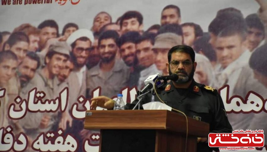 فرمانده سپاه ثارالله استان کرمان اظهار داشت: باید به نسل جوان بگویید، بنویسید و واقعیت را عنوان کنید که دشمنان هر چی داشتند بر سر ما ریختند و اما ما یک سانت خاک خود را ندادیم؛ اینکه ناموس خود را حفظ کردیم افتخار می کنیم؛ دامان تاریخ ایران اسلامی پاک است باید این مسائل را بازگو کنیم.
