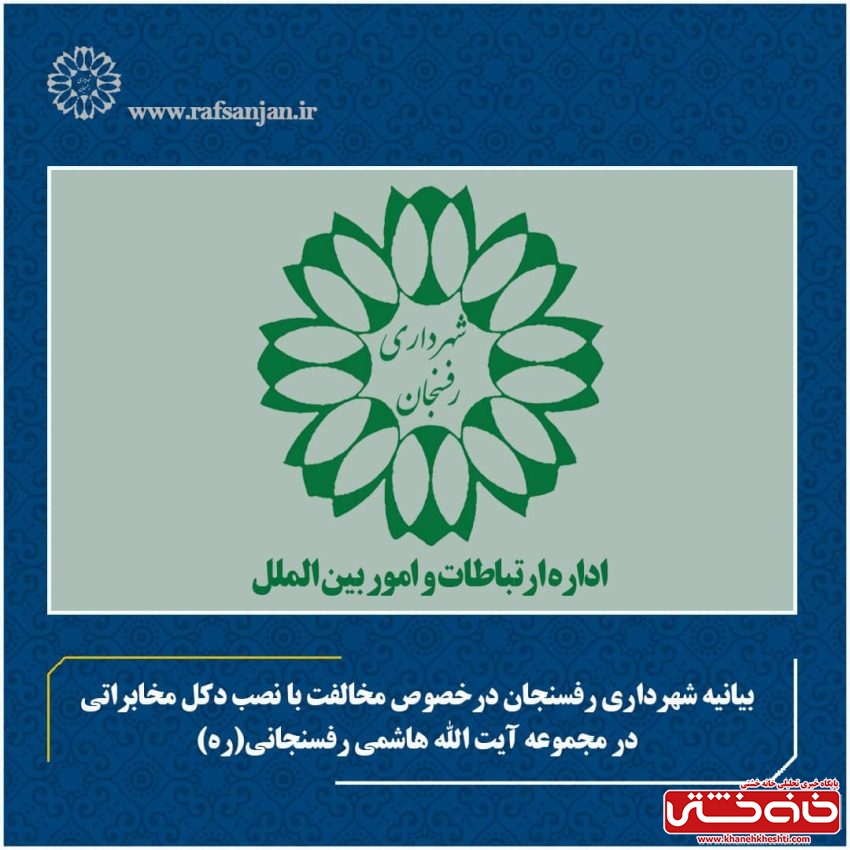 به گزارش خانه خشتی؛ در پی انتشار خبری مبنی بر مخالفت شهرداری با نصب دکل مخابراتی در مجموعه آیت الله هاشمی رفسنجانی(ره)، اداره ارتباطات و امور بین الملل شهرداری رفسنجان بیانیه ای صادر کرد.