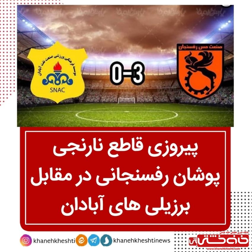 به گزارش خانه خشتی، مسی های رفسنجان از ساعت ۱۴ امروز و با قضاوت علی صفایی با توجه به بارش برف در سرچشمه، در سیرجان به مصاف نفت آبادان رفتند و در یک بازی یکطرفه موفق شدند با گل های دقایق ۳۰ سیدمهدی حسینی، ۵۴ فراز امامعلی و ۸۷ محمدرضا سلیمانی، حریف خود را شکست دهند، با این پیروزی مسی ها ۲۲ امتیازی شدند و با توجه به تفاضل گل بهتر نسبت به آلومینیوم اراک و پیش از برگزاری مسابقه فولاد خوزستان و پیکان تهران به رتبه چهارم جدول صعود کردند، مسی ها هفته آینده در تهران و در هفته چهاردهم به مصاف استقلال خواهند رفت.
