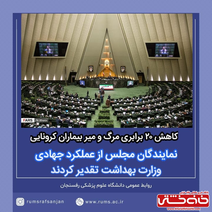 نمایندگان مجلس با اشاره به روحیه جهادی بهرام عین اللهی وزیر بهداشت و همکاران وی در وزارت بهداشت و دانشگاههای علوم پزشکی سراسر کشور و عملکرد مثبت وزارت بهداشت به ویژه در حوزه کرونا در ۴ ماه گذشته و بازگشت زندگی مردم به روال عادی و رونق اقتصادی، ابراز امیدواری میکنند که با مدیریت این بیماری و ویروس منحوس، می توان شاهد تحولات بزرگی در حوزه سلامت به ویژه خدمت رسانی در مناطق محروم بود.