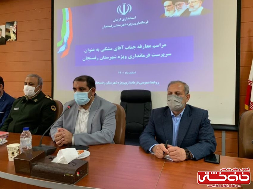 سرپرست جدید فرمانداری رفسنجان از علی اکبر پورمحمدی سرپرست سابق فرمانداری رفسنجان خواست که در کنار وی کمک کننده باشد و برای توسعه و رونق شهرستان تجرببیات و ایده های خود را ارائه دهد.