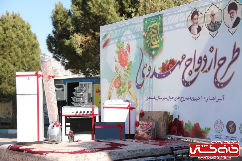 این اقلام شامل یخچال، ماشین لباس شویی، اجاق گاز، تلویزیون، جارو برقی، فرش، پتو، سرویس قابلمه و اتو است که توسط شهرداری، شورای اسلامی شهر رفسنجان و بسیج سازندگی سپاه شهرستان تدارک دیده شده است.