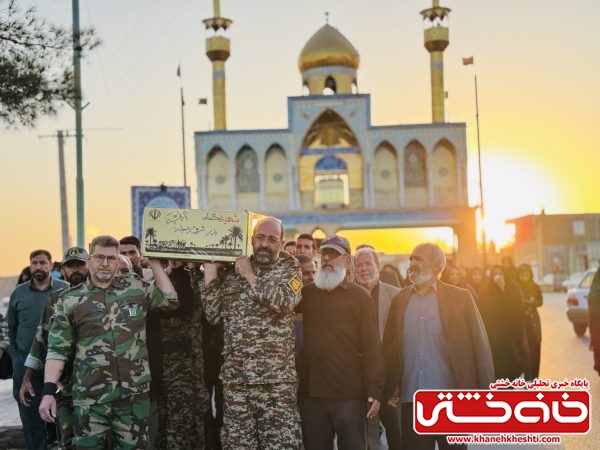 به گزارش خانه خشتی؛ مراسم تشییع پیکر مطهر شهید گمنام، پیش از تدفین در شهرستان رفسنجان، در روستاهای مختلف این شهرستان برگزار شد. مردم ولایتمدار، جوانان، خانوادههای معظم شهدا و ایثارگران و جمعی از مسئولان محلی با حضور گسترده خود فضایی سراسر معنویت و حماسه آفریدند.