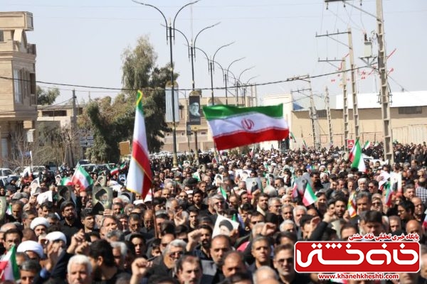 به گزارش خانه خشتی؛ این مراسم با حضور گسترده اقشار مختلف مردم و مسئولان محلی برگزار شد. راهپیمایان با سردادن شعارهای انقلابی و حمل پلاکاردهایی در تجلیل از مقام والای رهبر شهید انقلاب، وفاداری خود را به آرمانهای ایشان و تداوم مسیر انقلاب اسلامی ابراز داشتند.