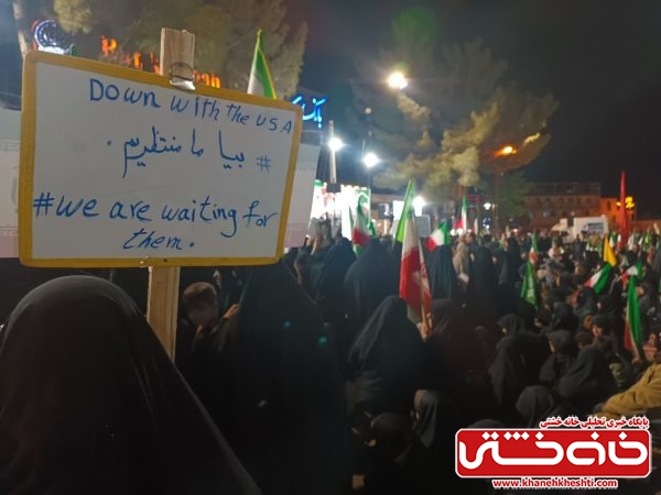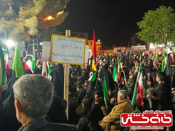 همزمان با چهلمین روز عروج رهبر شهید، جمعی از مردم رفسنجان در اجتماع مردمی با حضور در خیابانها و میدانهای شهر، ضمن گرامیداشت یاد و خاطره این چهره برجسته، بار دیگر بر حمایت خود از کشور و رزمندگان تأکید کردند.