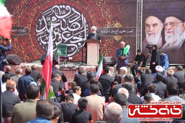 این اجتماع بزرگ با سخنرانی حجت‌الاسلام رضایی امام جمعه رفسنجان و استاد سعید عزیزی از تهران و مدیحه‌سرایی و رجزخوانی ابوذر روحی و مجتبی رمضانی همراه بود.