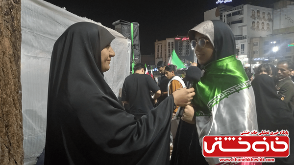 مریم مرادی در این گفتوگو در تشریح مشاهدات خود از این اجتماع مردمی اظهار داشت: اینجا صحنههایی میبینم که تا الان در عمر خبری خودم ندیدهام؛ چهرههای اصولگرا، اصلاحطلب، مردمی که همیشه در راهپیماییها بودهاند و مردمی که هیچوقت شرکت نکردهاند، اما کنار هم آمدهاند و دلهایشان به هم نزدیک شده است. این بزرگترین اتفاقی است که همزمان با سراسر کشور، رفسنجان را نیز دربرگرفته است.