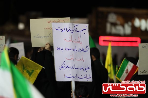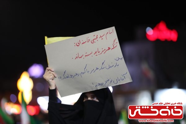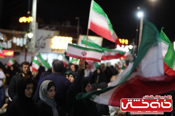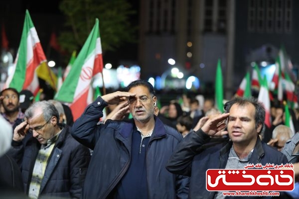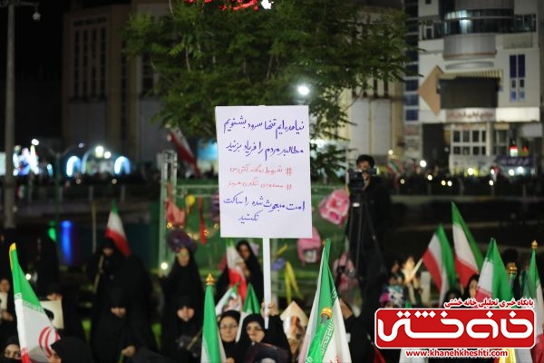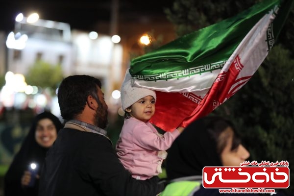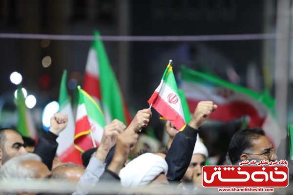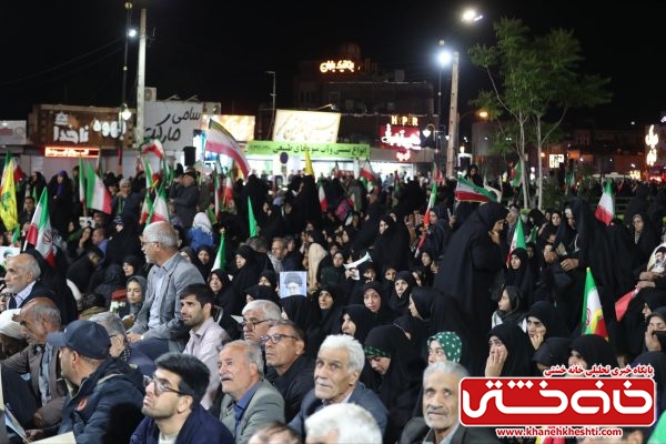 شرکتکنندگان با در دست داشتن پرچم ایران و تصاویر مقام معظم رهبری، بار دیگر عهد خود را با اصول انقلاب اسلامی و دفاع از حریم ایران تجدید کردند.