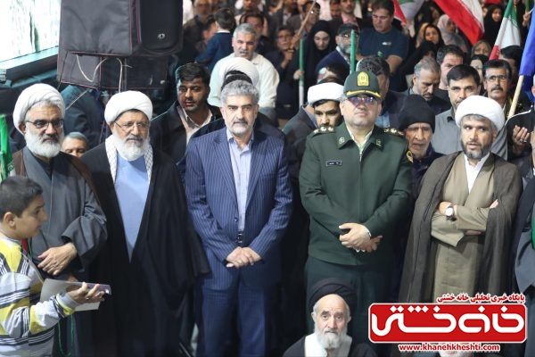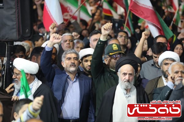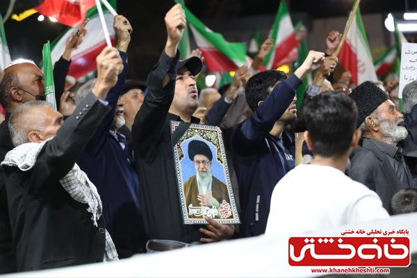 شرکتکنندگان با در دست داشتن پرچم ایران و تصاویر مقام معظم رهبری، بار دیگر عهد خود را با اصول انقلاب اسلامی و دفاع از حریم ایران تجدید کردند.