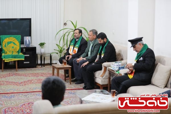 در این دیدار، خادمان رضوی با اهالی خانوادهی معظم شهدا دیدار و گفتوگو کردند و از صبر و استقامت آنان تجلیل به عمل آوردند. همچنین فضای دیدار با برافراشته شدن پرچم متبرک حرم امام رضا(ع) و ذکر مناجات رضوی، آکنده از احساسات معنوی و عطوفت بود.